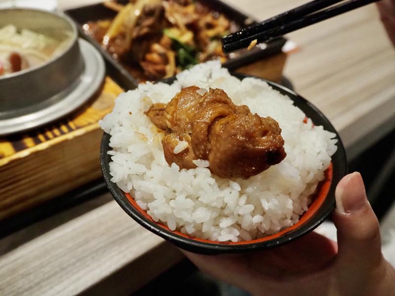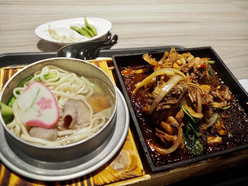 一份套餐NT.256,有鐵板三杯雞+白飯,又有鍋燒麵,飲料還免費續杯