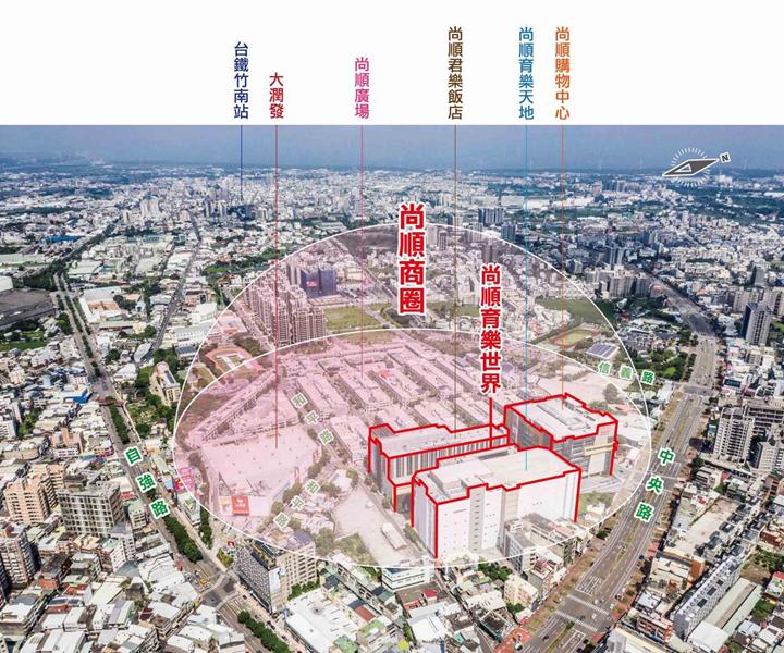 苗栗頭份的尚順世界有三棟建築,佔地約12,000餘坪包括: 尚順君樂飯店 、尚順育樂天地、尚順購物中心以及周邊的文創購物商圈,是竹苗地區最具指標性的一個地方,三棟建築2F皆設有連通空橋走道,讓住客方便往來飯店、育樂中心、與購物中心