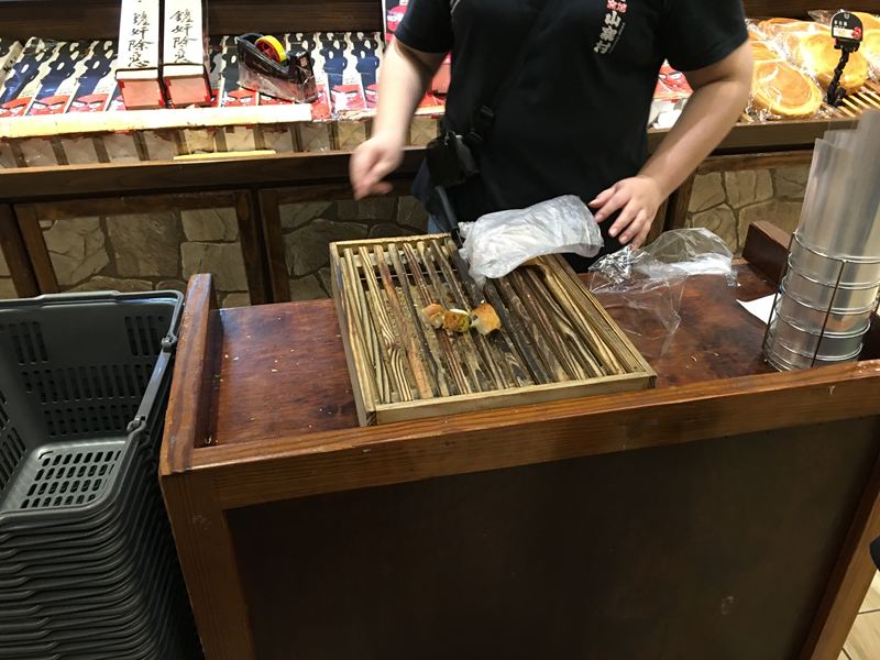 服務人員說:這一個香烤魷魚條是山寨村的第一名伴手禮