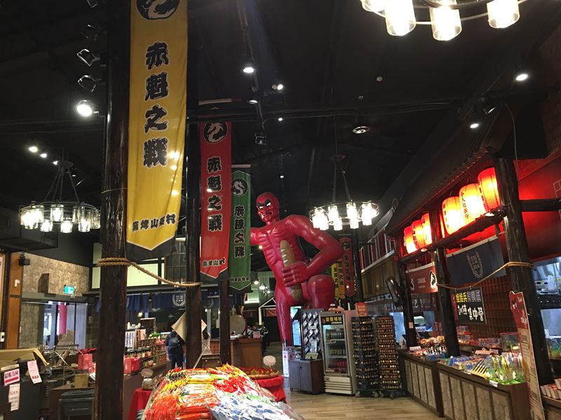 搭配超大的紅色燈籠與巨大紅色巨人的特殊風格裝飾造景,