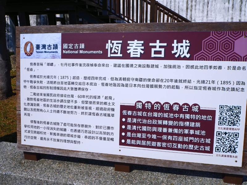 位於屏東縣恆春鎮的 恆春古城 興建於1875年至今已有約140年左右的歷史,是台灣現存古城保存最完善的,原於1979年被鑑定為一級古蹟,後來因為修復有缺失而在1985年公告為二級古蹟,過去這裡是許多遊客前往墾丁的轉運站,在海角七號電影爆紅後吸引了許多人前往這裡一睹電影中的經典場景,這也才讓人發現這一個很適合悠閒漫遊的恆春小鎮