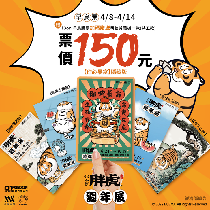 從知名人氣插畫家不二馬大叔筆下誕生出來的 我不是胖虎 系列的憨萌老虎,在今年於台北華山1914文創園區以旗艦店形式推出展覽,展期從2021年的聖誕節開始在這裡陪大家直到新春年後迎向2022年,旗艦店內除了有許多胖虎經典貼圖的必拍打卡造景,以及2.5米巨大招財胖虎充氣玩偶在虎年幫你招財,展場旗艦店還有許多的限定商品:超萌大型胖虎氣偶、帽T、票卡套、聯名口罩等等的商品,快來這裡瘋狂拍照買好買滿