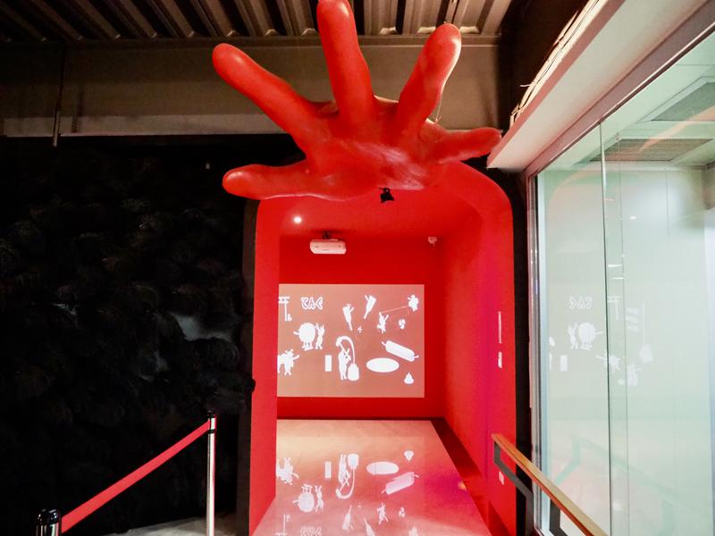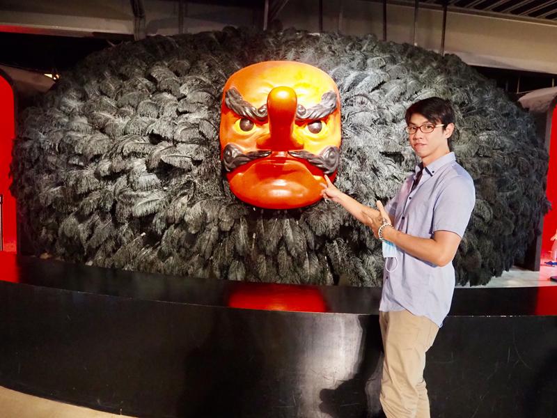 一進門就被這一個巨大的武士頭盔給吸引住眼球了,這一個武士頭盔的臉還會變來變去,一下子是人臉一下子是動畫臉,還滿有趣的