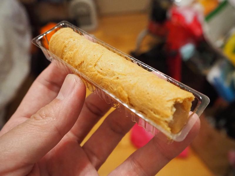 有餡蛋捲實體,一根大約10公分左右,大約兩口就沒了 XD