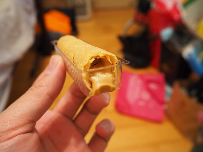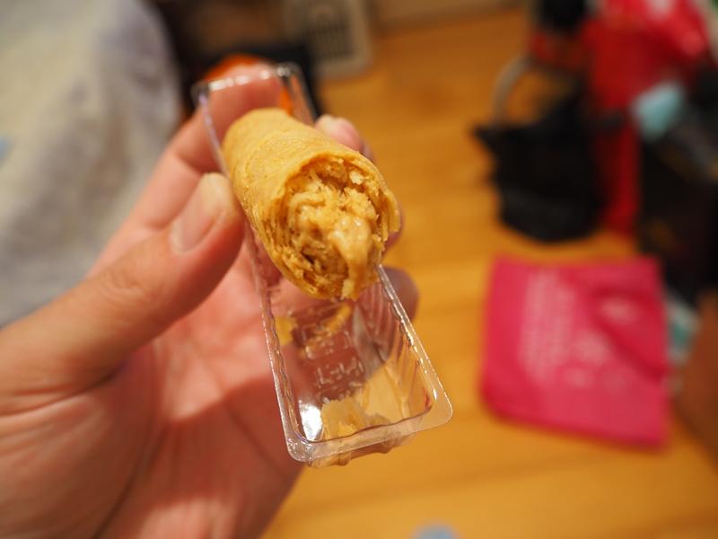 裡面的內餡真的沒在客氣,整根滿滿的都是花生醬,這個有餡蛋捲真的好吃 XD