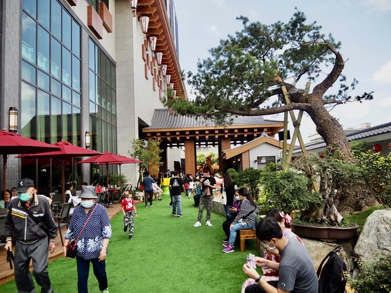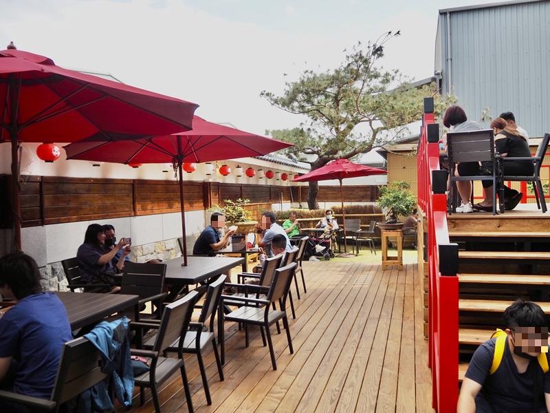這裡還有個戶外空間,庭院的座位區也充滿著日本風格