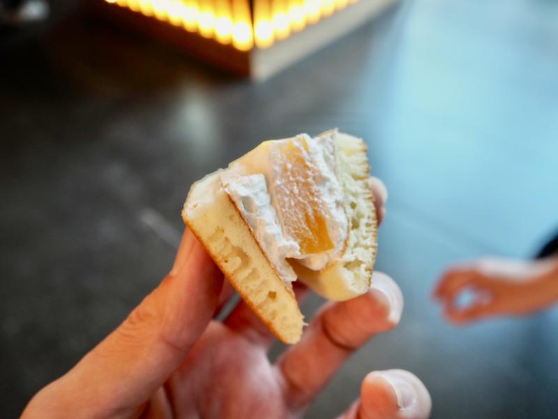 銅鑼燒包芒果很少見,當天這一攤的試吃最多人排隊