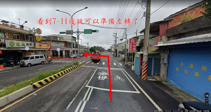 比較容易的方法,就是看到路口這間7-11後就可以準備左轉了