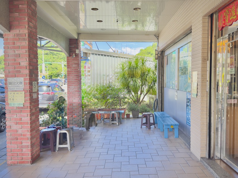 騎樓的戶外座位,讓人可以在悠閒的走廊上享受美味