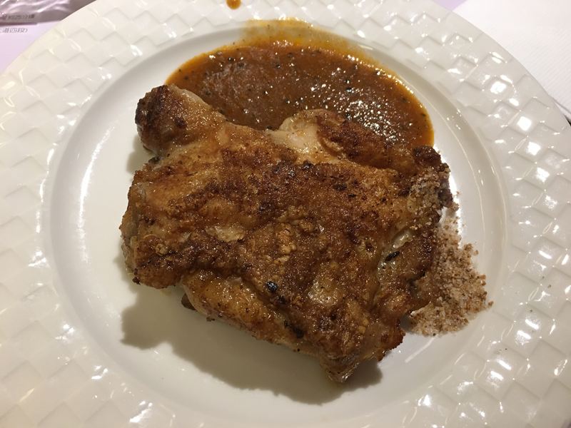 這個雞腿排表皮脆脆的,肉質很嫩,比牛排還好吃耶!~ XD