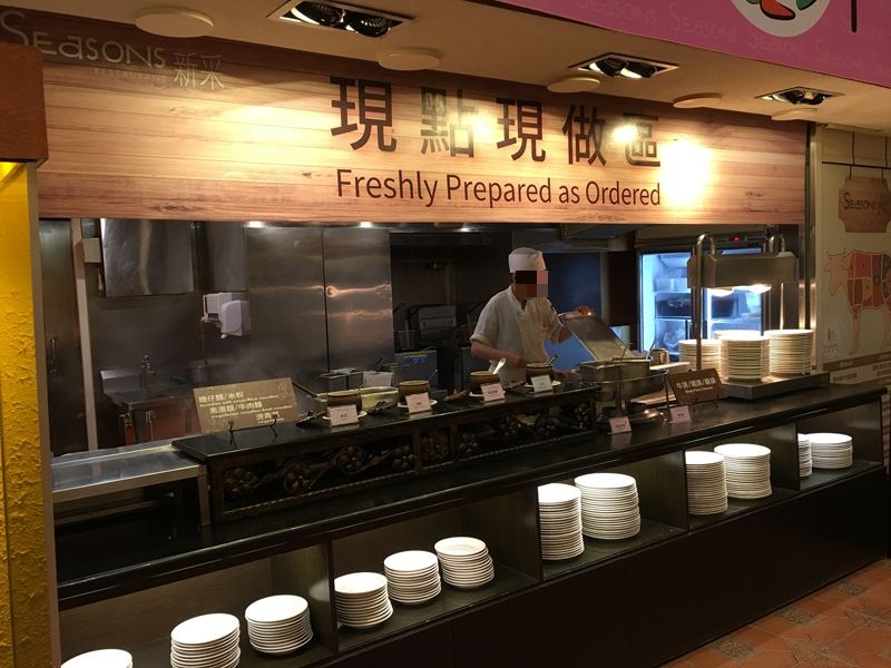 右邊自助百匯,左邊鐵板燒、飲料區