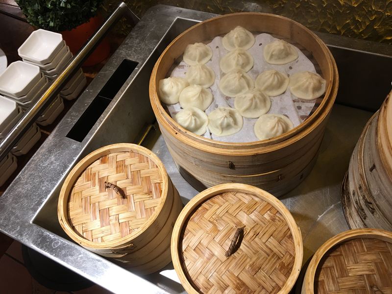 湯包、酒香海瓜子、焦糖烤地瓜、炒羊肉、蔥燒蜜汁豬小排、里肌肉片冷盤