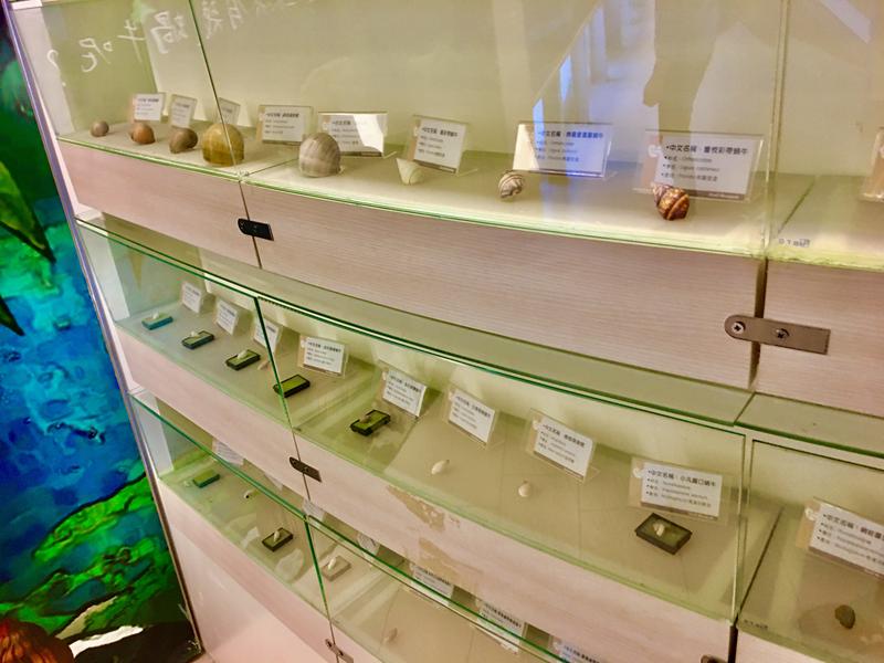 館藏由黃葛亮先生及沈淑惠小姐提供,展示多種貝類的標本