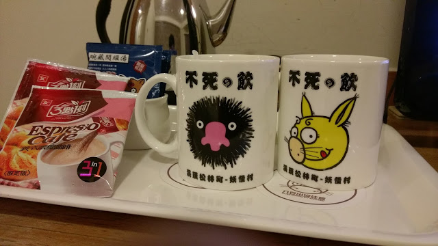 隨房附贈的飲品 妖怪村造型馬克杯可以隨意使用 但是不能帶走,帶走要收錢滴