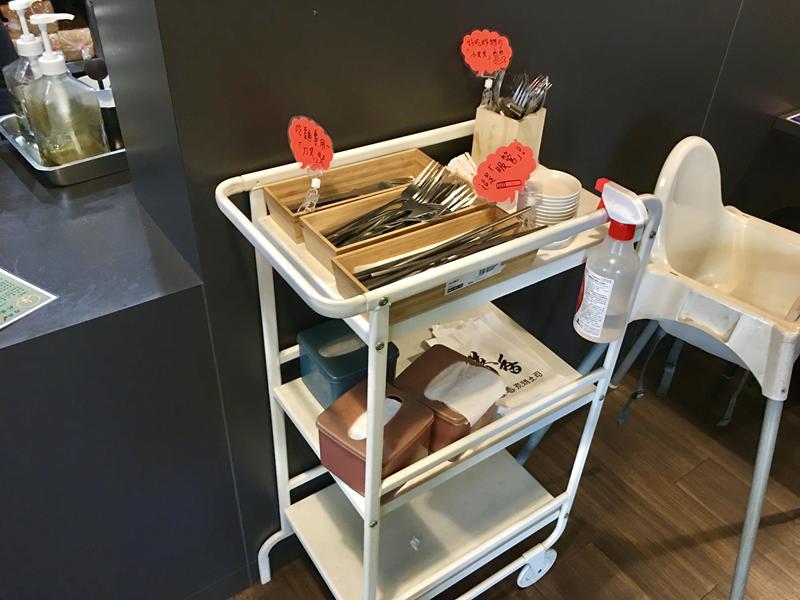 內用餐具在櫃檯旁,餐具是採自助式,需要什麼餐具可以來這自取