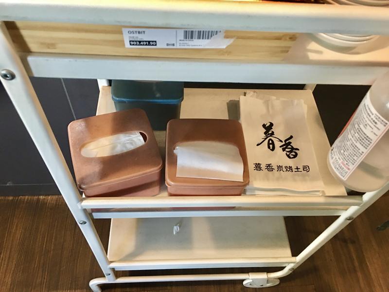 底下有紙巾、紙袋,想把食物拿在手上食用,可以來這裡拿取紙袋