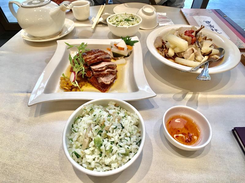 爐掛烤櫻桃鴨、麻油松阪豬、蘆筍鮮蝦餃、頂湯人參燉雞