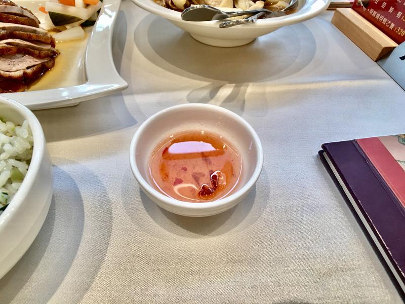 搭配櫻桃鴨的沾醬更增添風味,沾醬吃起來有些甜甜的,本來以為是偏辣的沾醬