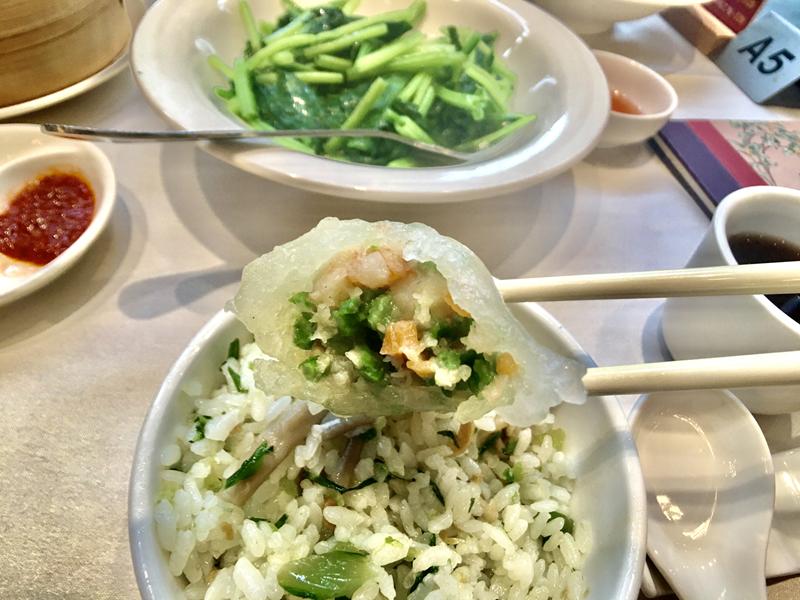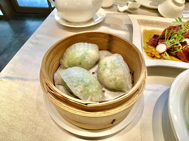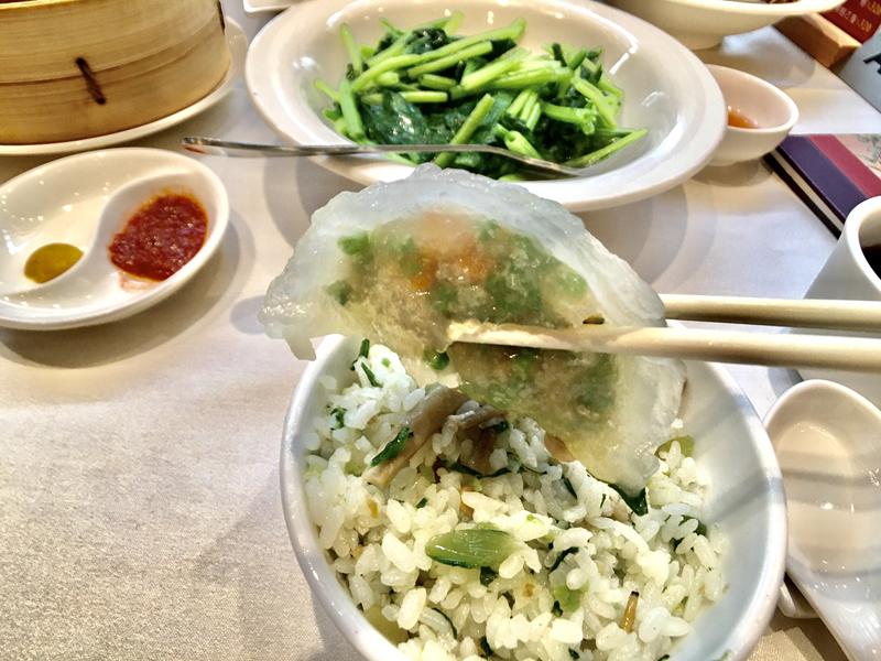 水晶餃的Q彈外皮,當天吃不出中間的蘆筍,但蝦子滿大一隻的
