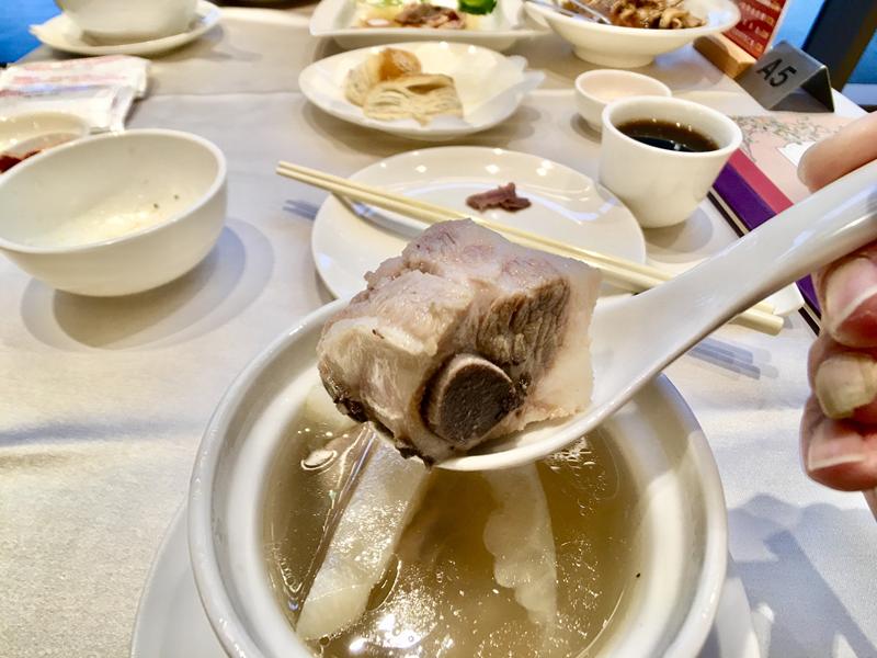 人參雞湯的雞肉也是超大一塊,大到整個湯匙都快放不下了