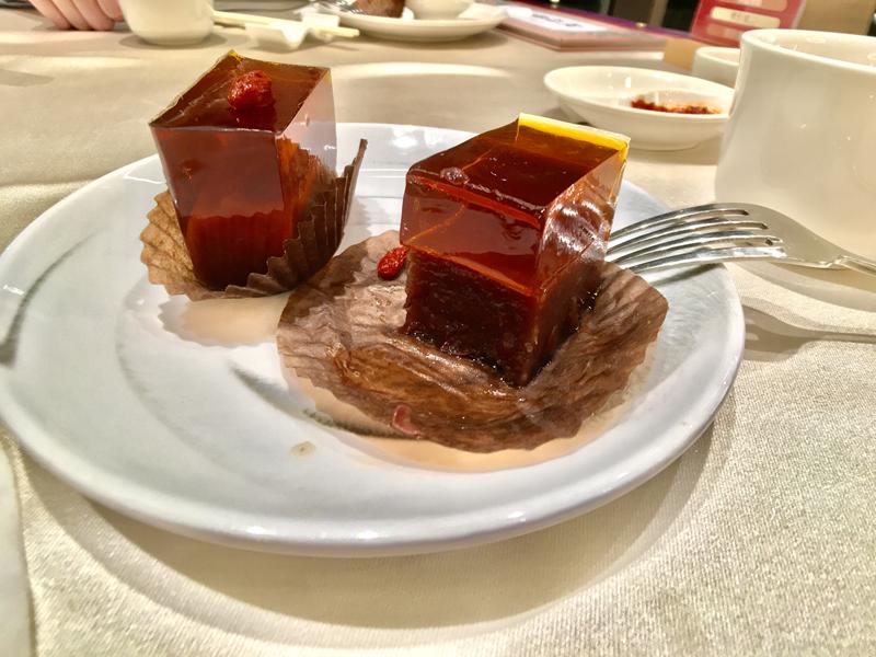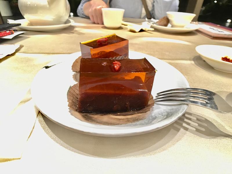 晶瑩剔透的桂花凍底下是紅豆糕,吃起來有點像羊羹當作飯後甜點滿適合的