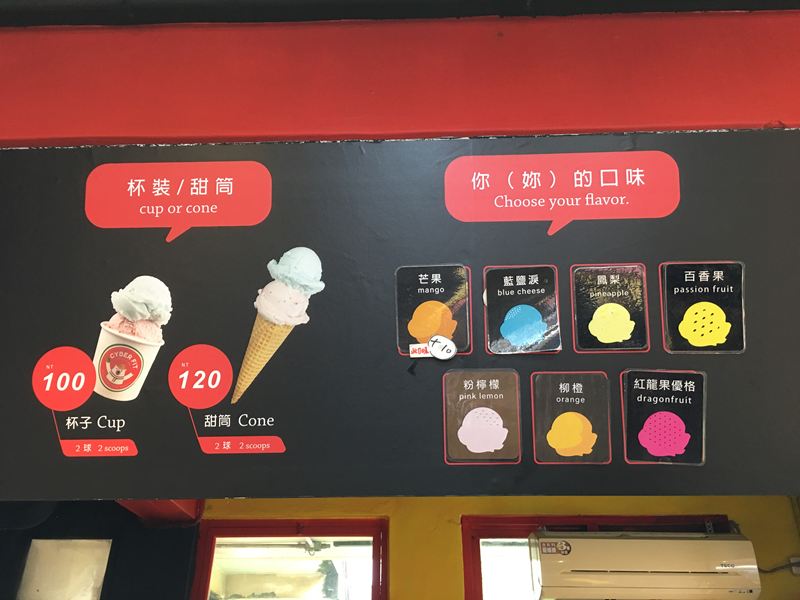 這裡的冰有分兩種,杯裝與甜筒,兩種價格不一樣,在於是杯裝還是餅乾甜筒冰淇淋的差別,冰品都一樣
