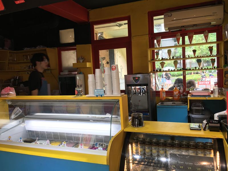 這次來台中審計新村遊玩,在逛市集當中發現這間裝潢很繽紛的冰淇淋店,當天雖然下著雨,但正直7月中的天氣也是有點悶熱,當然也會想要吃冰消暑一下囉!~XD
