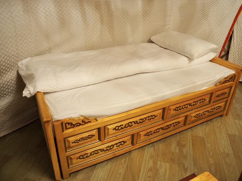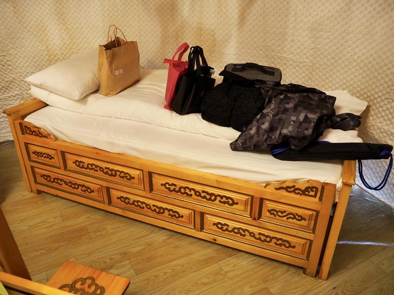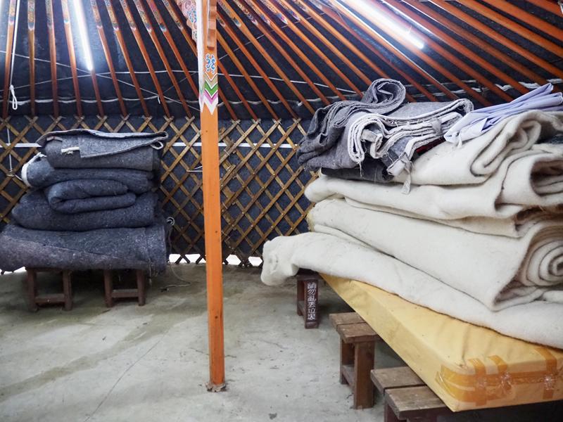 蒙古包裡面空間還滿寬敞的,有兩張單人床、一張雙人床,每個蒙古包一次可以入住4個人,但2人入住與4人價格不同