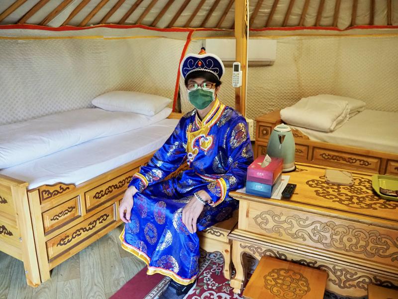 住宿方案裡有贈送蒙古服體驗1小時,難得來到這裡當然要穿一下體驗融入蒙古大漠的道地風情 XD