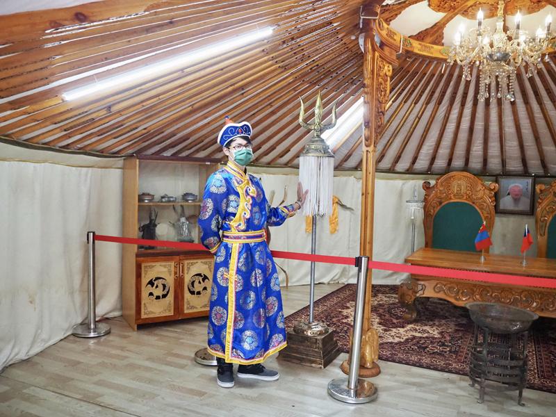 由蒙古空運來台組裝的正港蒙古包,聽說這些不用一根釘子的蒙古包組裝起來可是相當不易,當時還請來在台灣的蒙古留學生幫忙組裝,帳棚內的裝飾與圖騰都是真正蒙古當地繪製、雕刻