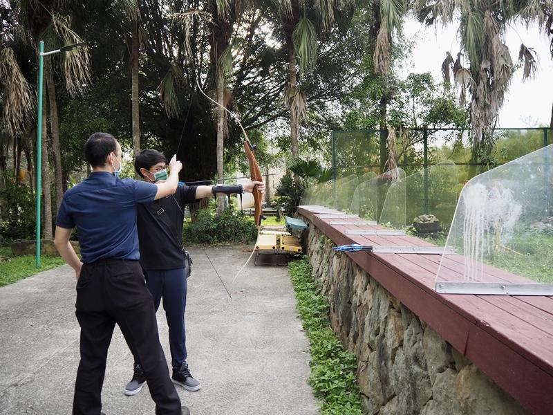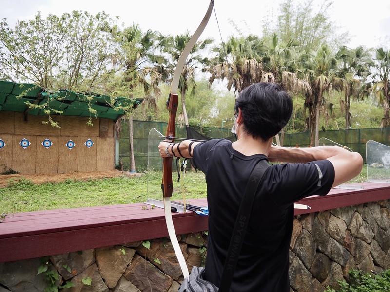園區內還有一個射箭體驗場,這裡有專門的教練教導你玩射箭體驗,吃完下午茶後蒙古服體驗時間也到了,換下衣服後來這裡運動一下消化消化 XD