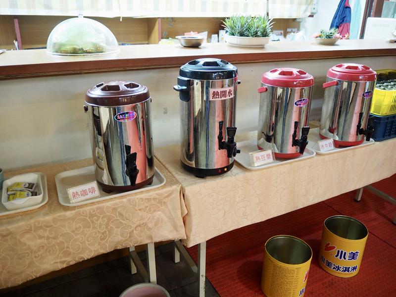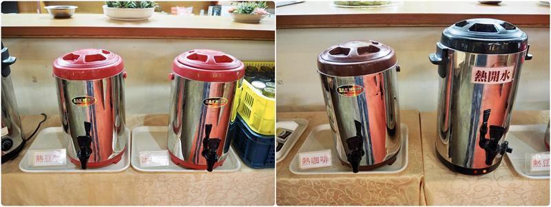 ↑ 飲品種類有:熱咖啡、茶包、熱豆漿、冰牛奶