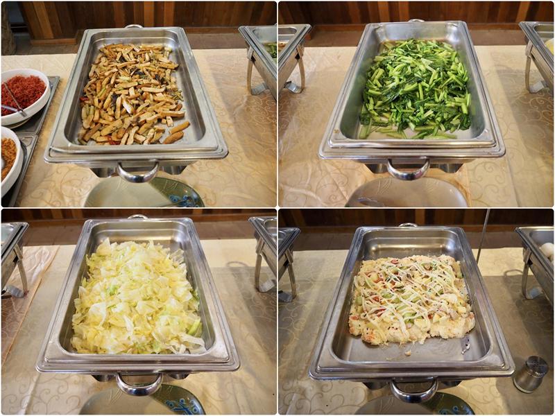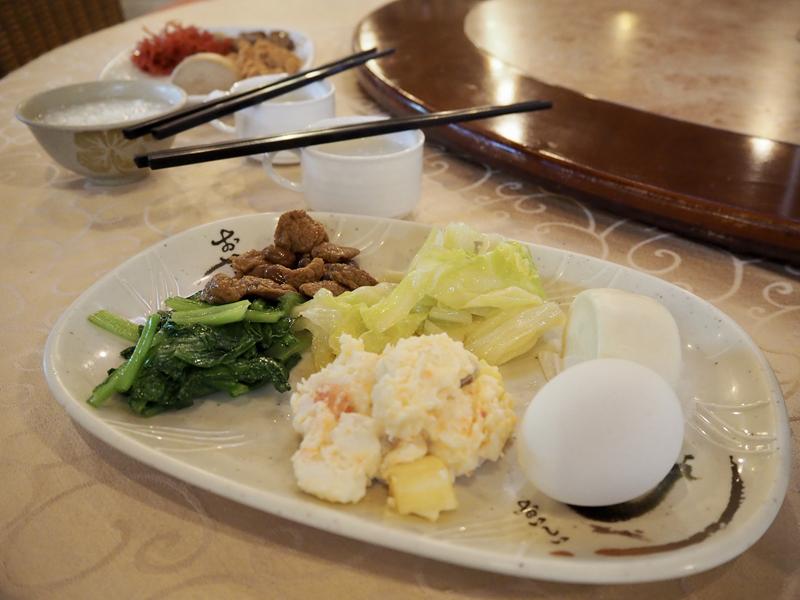 基本上早餐以中式為主,清粥小菜、蔬菜熱炒、水煮蛋、饅頭等等的菜色,雖說跟大飯店比起來種類算少,但要飽餐一頓也還是可以的