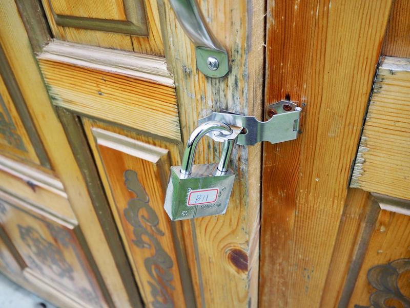 蒙古包的外門鎖是一個鎖頭,剛剛Check in拿到的鑰匙可以打開,外出的時候就是用這個鎖頭把門鎖上