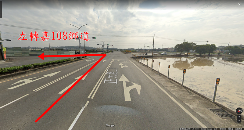 民雄交流道下縣道164號行駛,來到正大路二段後這個路口左轉嘉108鄉道