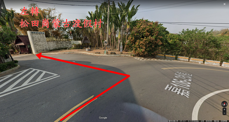 在繼續行駛後可以看到松田崗蒙古渡假村在左手邊