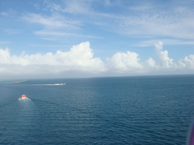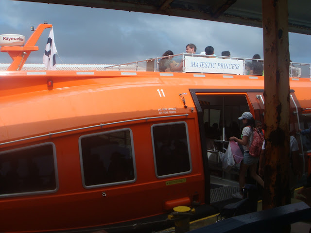 來到碼頭準備坐接駁船回公主號囉!~,公主號服務員很貼心還到碼頭,發冰毛巾跟冰茶給排隊等接駁船的人,接過冰涼的毛巾,心也跟著涼快了起來 XD