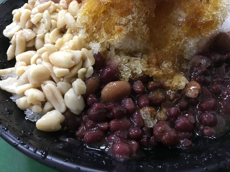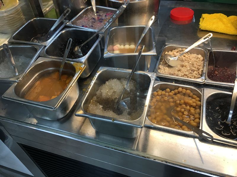 冰品配料超級多、紅豆、芋圓、粉圓、花生、薏仁、粉粿、花生醬、烏梅醬、煉乳等等,你能想到的配料這裡幾乎都有