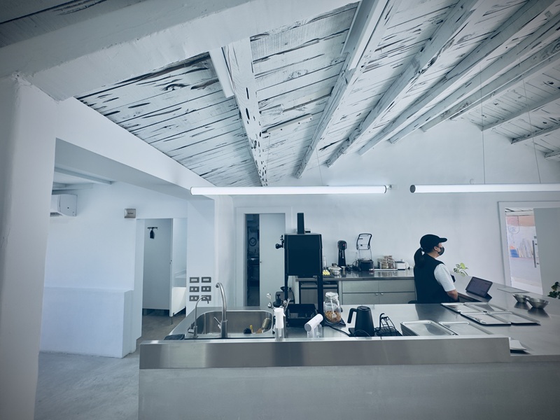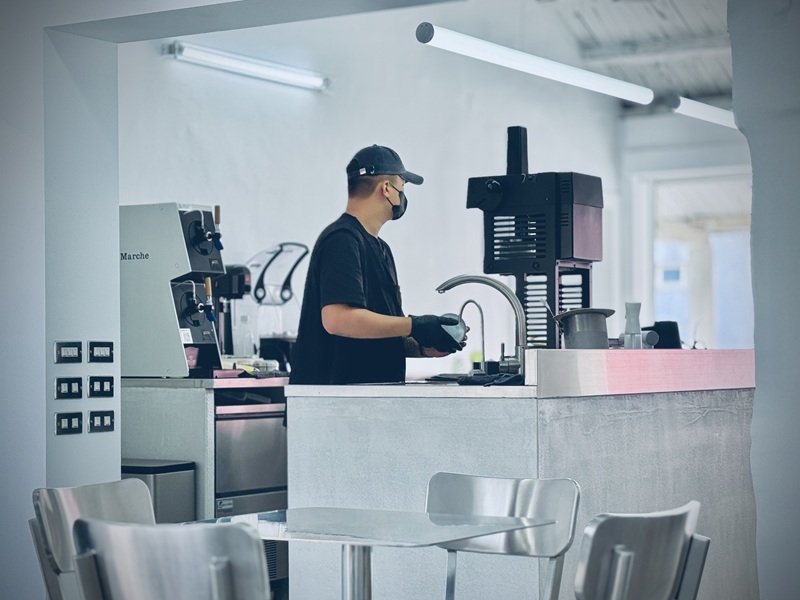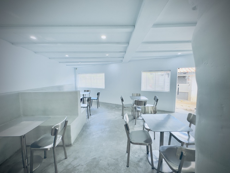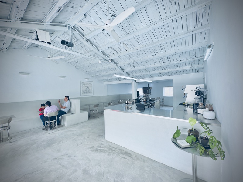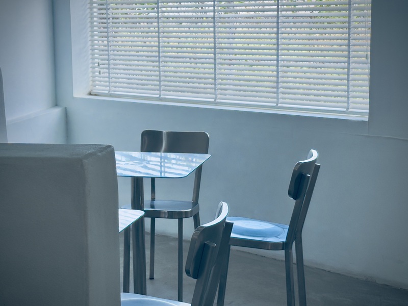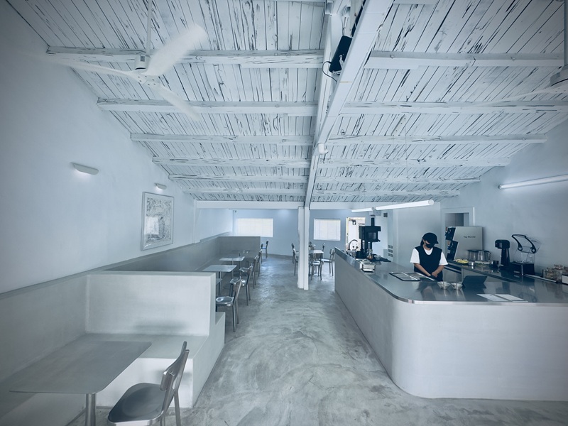 店內設計以簡約為主,融合純白色調與金屬材質,營造出一種現代感十足且清新的氛圍