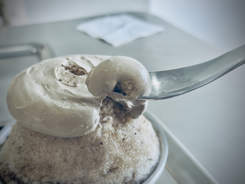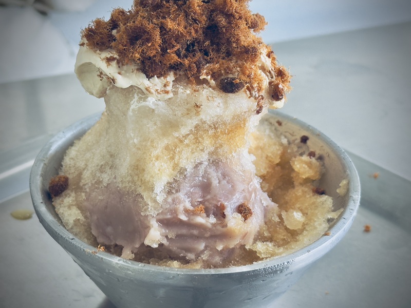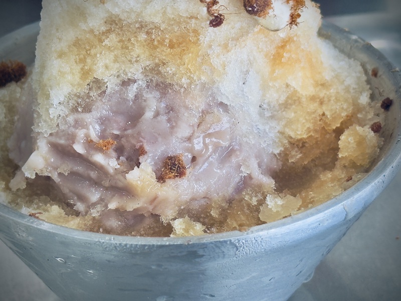 而底層的冰品裡藏著滿滿的芋頭泥,芋頭香氣濃郁,還能吃到一顆顆的芋頭顆粒,口感紮實又滿足