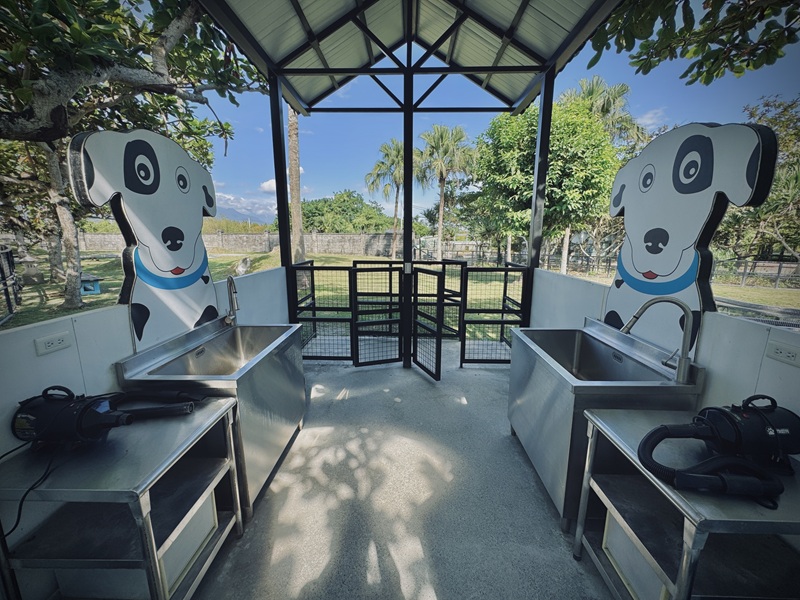 這裡也有設置佔地約500坪的毛孩專屬樂園,專為入住的毛孩家庭設計,這裡不僅讓毛孩可以盡情放風,還能享受游水的樂趣。園區分為兩大區域,分別適合中型犬與小型犬,設有涵洞、跳台以及造型沙坑等體能設施