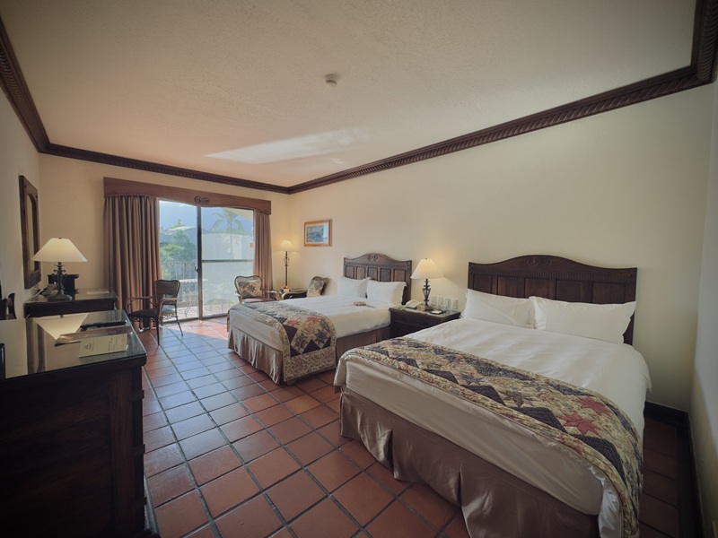 對於家庭旅遊或好友同行,飯店的「豪華客房(兩中床)」是極佳的選擇,客房空間約 15 坪,寬敞且動線優雅,最吸睛的是房內陳設了典雅的古董手工木製傢俱,營造出溫潤的歐式莊園感。