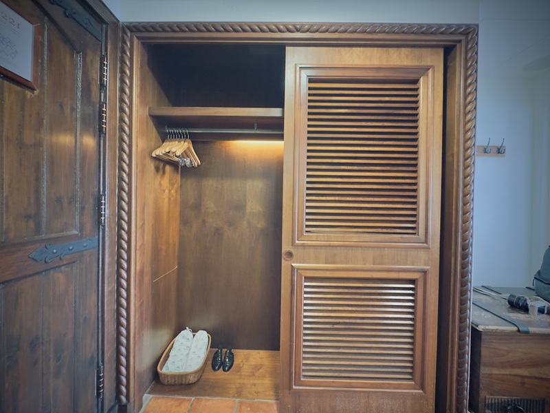 玄關處設有衣櫃,整體空間感覺十分寬敞,讓人一進門就感受到舒適與便利,不僅可以方便地收納外套、鞋子等物品,也讓整體環境看起來更整潔有序。