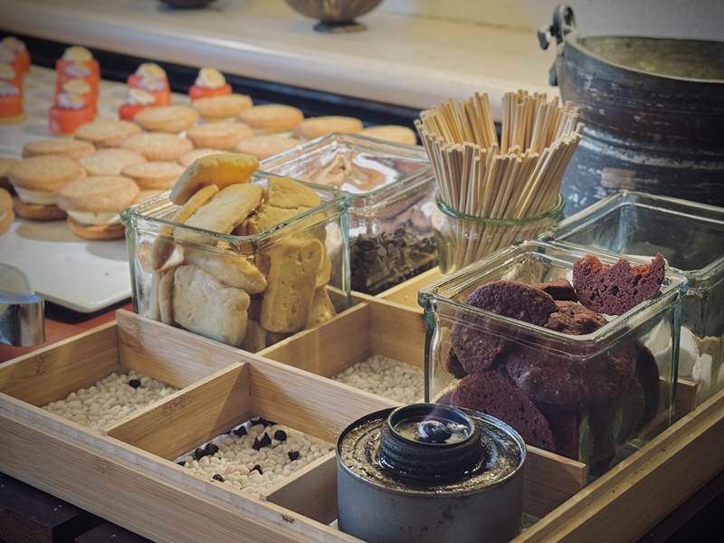 理想大地的下午茶服務設在里拉餐廳,這裡其實也是他們提供晚餐和早餐的地方,下午茶選擇雖然簡單,但有輕食、餅乾、燒仙草,還有咖啡和冷熱飲可以選擇,感覺很適合來這裡放鬆一下,享受悠閒的午後時光。