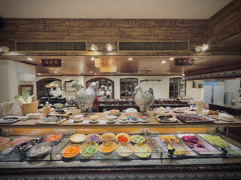 飯店內的餐飲部分則由「里拉餐廳」包辦,擁有近 300 個座位的寬敞空間,提供中西式自助 Buffet,從早餐的清粥小菜、熟食麵包,到晚餐的現切牛排與現煮牛肉湯,餐點種類多元且口味穩定