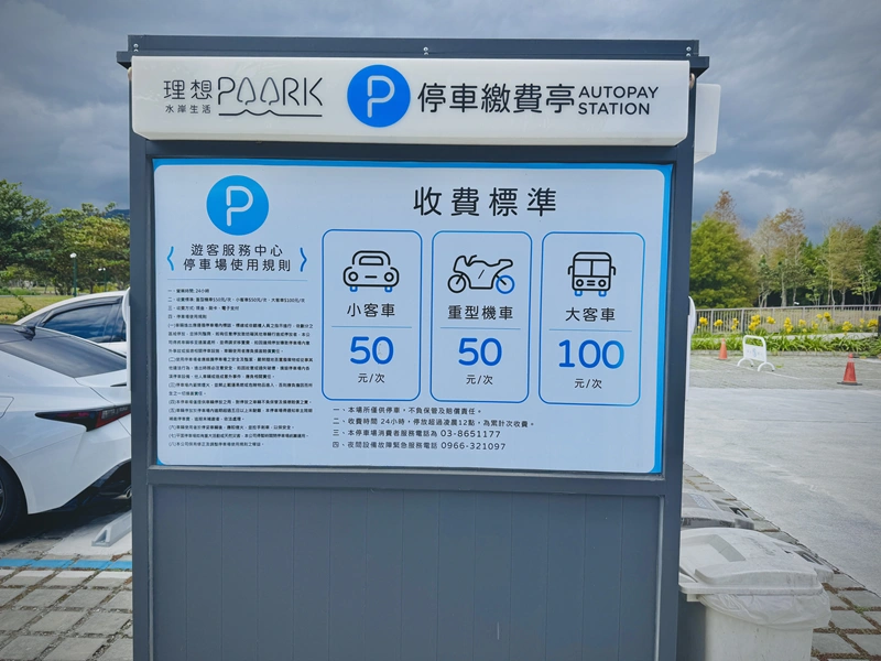 - 停車費: 小客車NT.50 /次 重型機車NT.50 /次 大客車NT.100 /次。