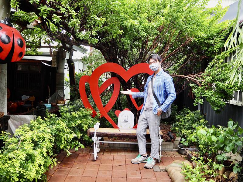 農莊內有許多藝術造景可以拍照,當天下完一場雨座椅濕濕的只好站著拍