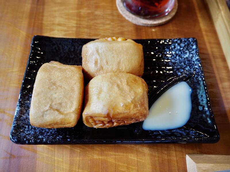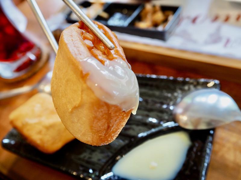 與其說是炸饅頭,比較像是炸銀絲卷,炸過後表皮脆脆的,咀嚼後有股麵香,沾上煉乳後更加好吃