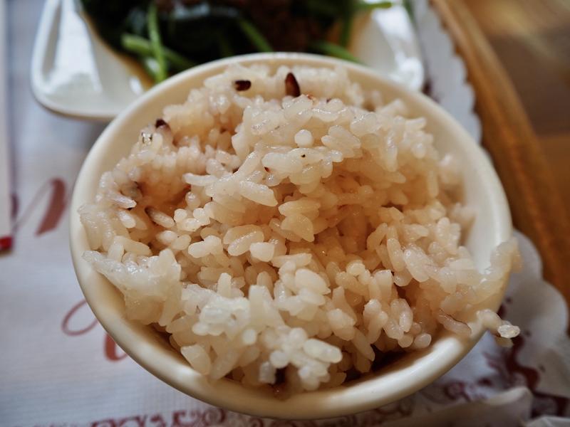田寮農莊的白米飯是自家耕種的台梗九號米,香Q好吃加上一些紫米更增添香氣(套餐白飯可以無限續碗)