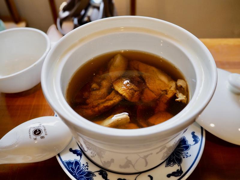 香菇用的是巴西蘑菇與雞肉一起燉到軟嫩,雞肉入口一抿就散開